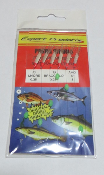 Lenza per pesce azzurro a 6 ami con piumino, la classica “mitraglietta”, disponibile  con amo nr.  8