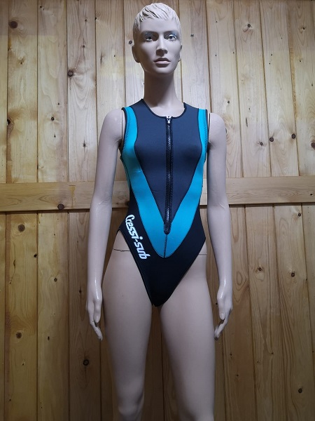 Women’s short wetsuit, high-cut and sleeveless bodice. Neoprene mm. 3.5 with double stitching reinforced at the edges