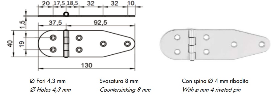 Cerniera mm. 40×130 sp. 1,5 aisi 304 / A2