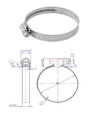 Fascette stringitubo, Aisi 304 – A2 con banda da 12 mm, vite in acciaio zincato
