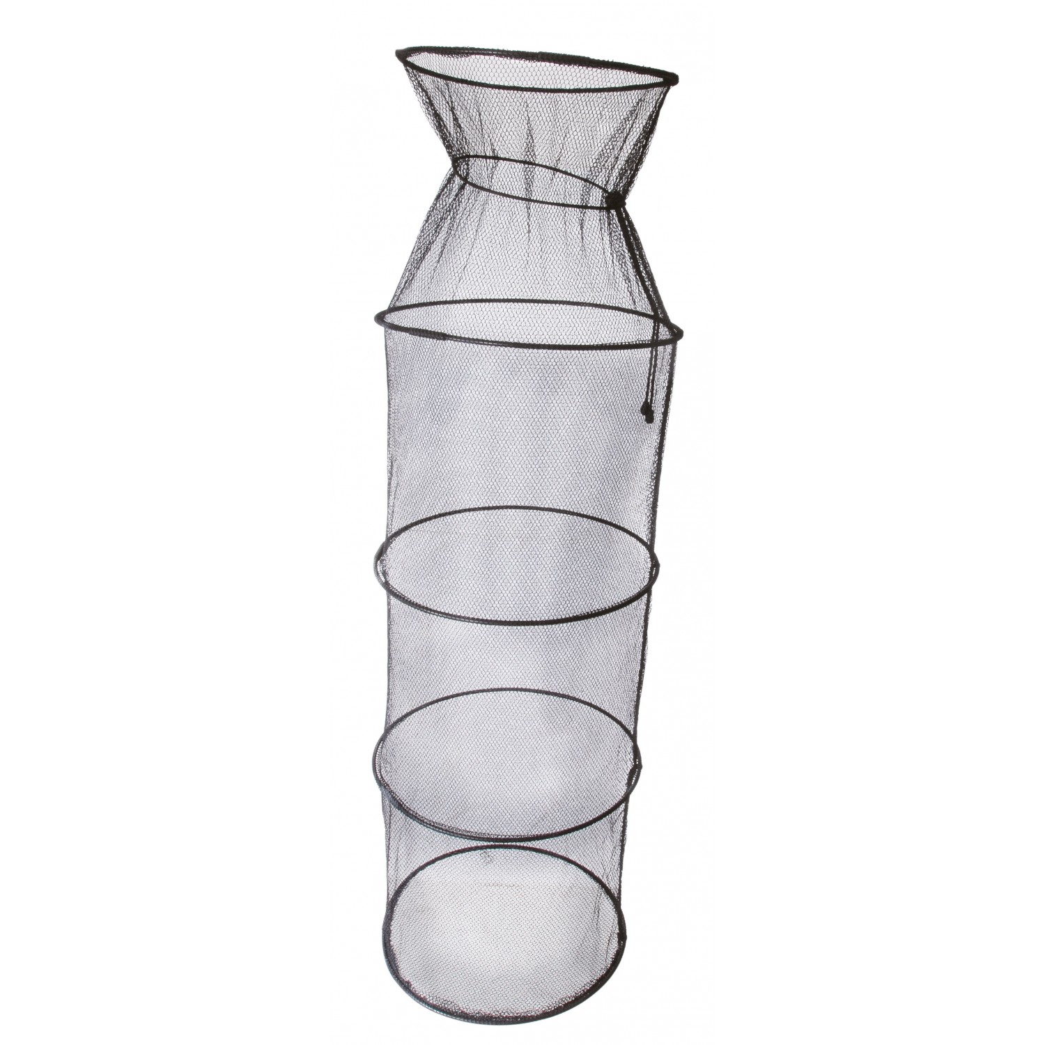 Nassa porta pesci in rete robusta, malgia 4 mm, anelli in plastica.
