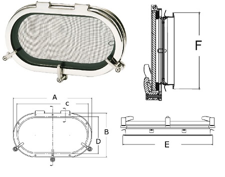 Completamente in acciaio inox AISI 316 lucidato a specchio, serie extra con finitura accuratissime. Caratteristiche: viti di fissaggi esterne invisibili; completi di controflangia esterna; zanzariera in acciaio inox amovibile; galletti di chiusura regolabili, fabbricati in microfusione; parte trasparente in policarbonato ad alta resistenza; approvati CE area 1 categoria 1.