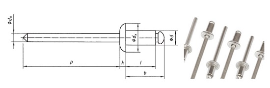 Rivetti inox a strappo ad estremità aperta con mandrino a punto di rottura prestabilito e testa bombata