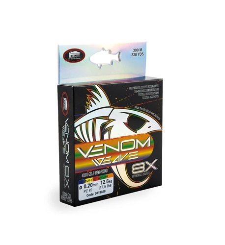 Venom Weave Multicolour è un trecciato 8 capi ad alta resistenza progettato per offrire prestazioni elevate nella pesca in mare. La sezione rotonda riduce gli attriti negli anelli e limita gli aggrovigliamenti, garantendo lanci lunghi e grande stabilità anche durante i combattimenti più impegnativi. La colorazione multicolor con cambio ogni 10 metri consente un controllo immediato di distanza e profondità, ideale per tecniche verticali e lanci a lunga gittata.