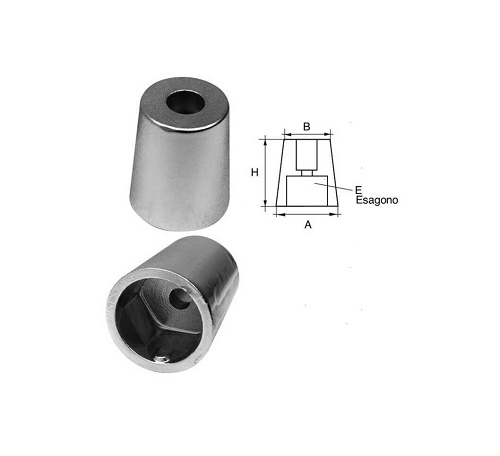 Anodo a ogiva con innesto conico esagonale per assi portaelica.