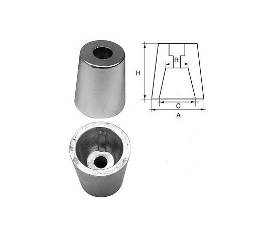 Anodo a ogiva con innesto conico per assi portaelica. Per asse da 30 mm